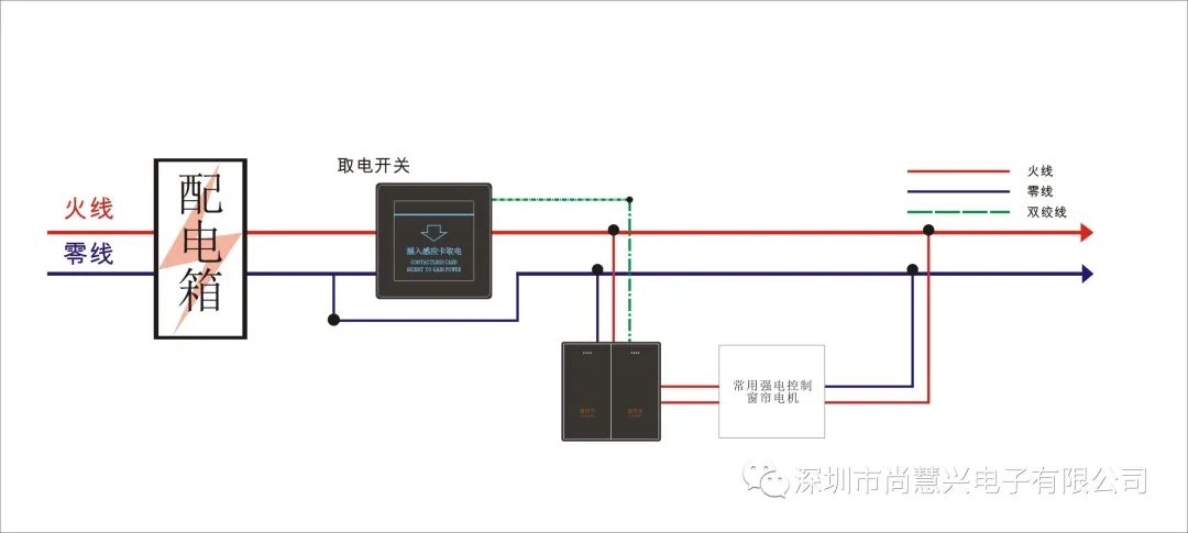 電機(jī)類型: 01三線制 零線、正轉(zhuǎn)線、反轉(zhuǎn)線(不含地線) 02四線制 零線、火線、正轉(zhuǎn)線、反轉(zhuǎn)線(不含地線) 03干接點(diǎn) 零線、火線、干接點(diǎn)正轉(zhuǎn)線(兩芯)、干接點(diǎn)反轉(zhuǎn)線(兩芯) 可控制類型 上述電機(jī)類型1、2項均可控制,第3項干接點(diǎn)需定制,不推薦使用,我司窗簾開關(guān)控制原理與燈光控制原理一致,當(dāng)按下開關(guān)時,輸出220V電壓,電機(jī)接收到電壓后正轉(zhuǎn)、反轉(zhuǎn)。 布線: 1 )三線制 窗簾開關(guān)零線、火線供電,窗簾電機(jī)零線接通,窗簾開關(guān)正轉(zhuǎn)線、反轉(zhuǎn)線到窗簾電機(jī),窗簾開關(guān)485雙絞線與開關(guān)相連。 2)四線制 窗簾開關(guān)零線、火線供電,窗簾電機(jī)零線、火線接通,窗簾開關(guān)正轉(zhuǎn)線、反轉(zhuǎn)線到窗簾電機(jī),窗簾開關(guān)485雙絞線與開關(guān)相連。 功能 1)推門窗簾自動打開/關(guān)閉(需搭配我司門磁、取電開關(guān)、窗簾開關(guān)) 2)插卡窗簾自動打開/關(guān)閉(需搭配我司取電開關(guān)、窗簾開關(guān)) 3)明亮模式窗簾自動打開(需搭配我司智能開關(guān)、窗簾開關(guān)) 4)睡眠模式窗簾自動關(guān)閉(需搭配我司智能開關(guān)、窗簾開關(guān)) 5)拔卡窗簾自動關(guān)閉/打開(需搭配我司取電開關(guān)、窗簾開關(guān)) 6)互鎖(我司窗簾開關(guān)均默認(rèn)互鎖,窗簾開與窗簾關(guān)只能打開一個,避免電機(jī)燒掉) 7)延時(我司窗簾開關(guān)均默認(rèn)延時,窗簾開與窗簾關(guān)切換時自帶延時,避免電機(jī)燒掉) 8)延時自動關(guān)閉(當(dāng)按下窗簾開或者窗簾關(guān),無需繼續(xù)操作,延時兩分鐘后自動關(guān)閉,避免電機(jī)一直在工作,也有效解決夜間開關(guān)背光影響客人休息) 特別注意: 1)以上布線說明為一個電機(jī)的線路,兩個電機(jī)需要相應(yīng)增加布線,原理與第一個電機(jī)一致。2)使用開門、插卡窗簾場景,取電開關(guān)必須做成強(qiáng)電485的。 我們的產(chǎn)品既能為客人提供更為安全、舒適、便捷的人性化服務(wù)的同時,又能達(dá)到節(jié)能、安全、健康、環(huán)保的目的更以時尚設(shè)計風(fēng)格引導(dǎo)行業(yè)流行潮流。 掃碼關(guān)注我們