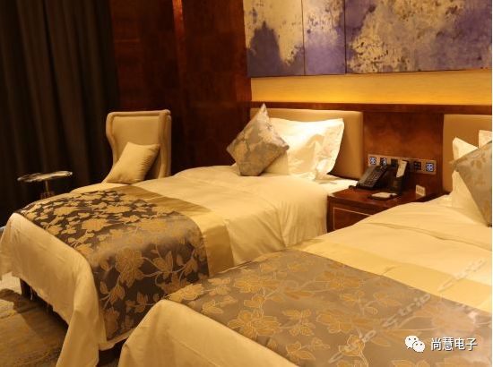 客房部擁有總統套房、商務套房、行政套房、豪華標準間、商務標準間,共136套,可同時容納260人入住。100M光纖無線信號、中央空調、凈水設備覆蓋,所有房間均安裝尚慧電子的電子門牌和智能輕觸開關,為客人提供更為安全、舒適、便捷的人性化服務的同時,又能達到節能、安全、健康、環保的目的更以時尚設計風格引導行業流行潮流。