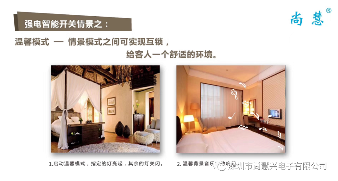 我們的產品既能為客人提供更為安全、舒適、便捷的人性化服務的同時,又能達到節能、安全、健康、環保的目的,更以時尚設計風格引導行業流行潮流。尊尚品味,智慧生活,從尚慧智能開關開始!
